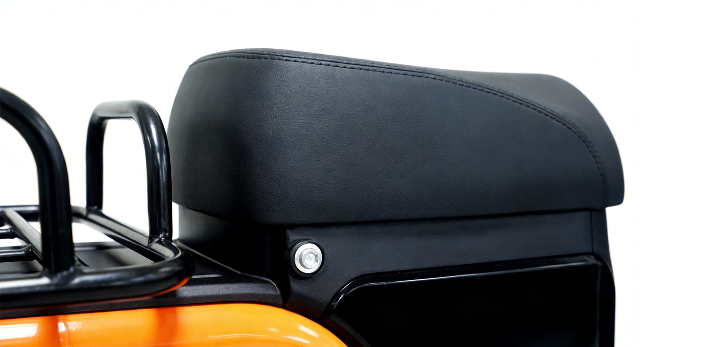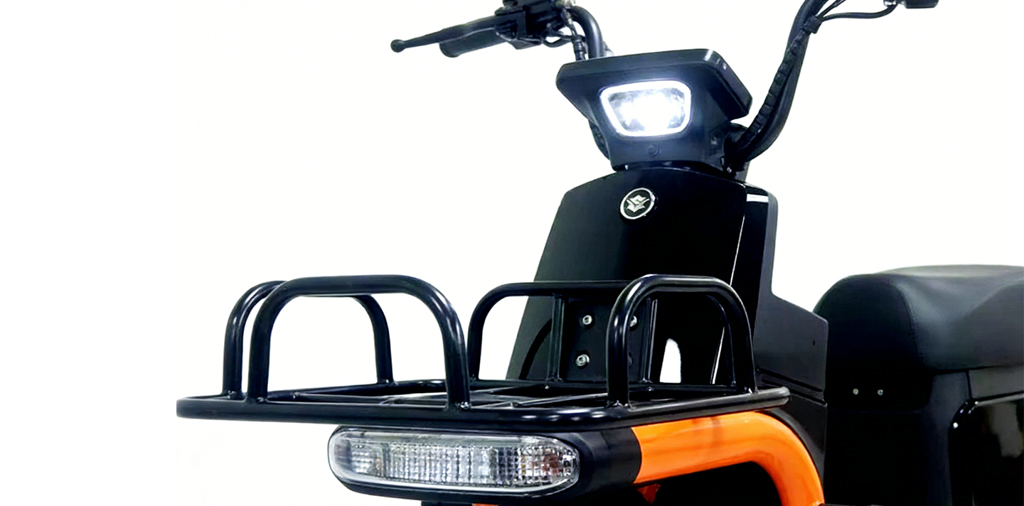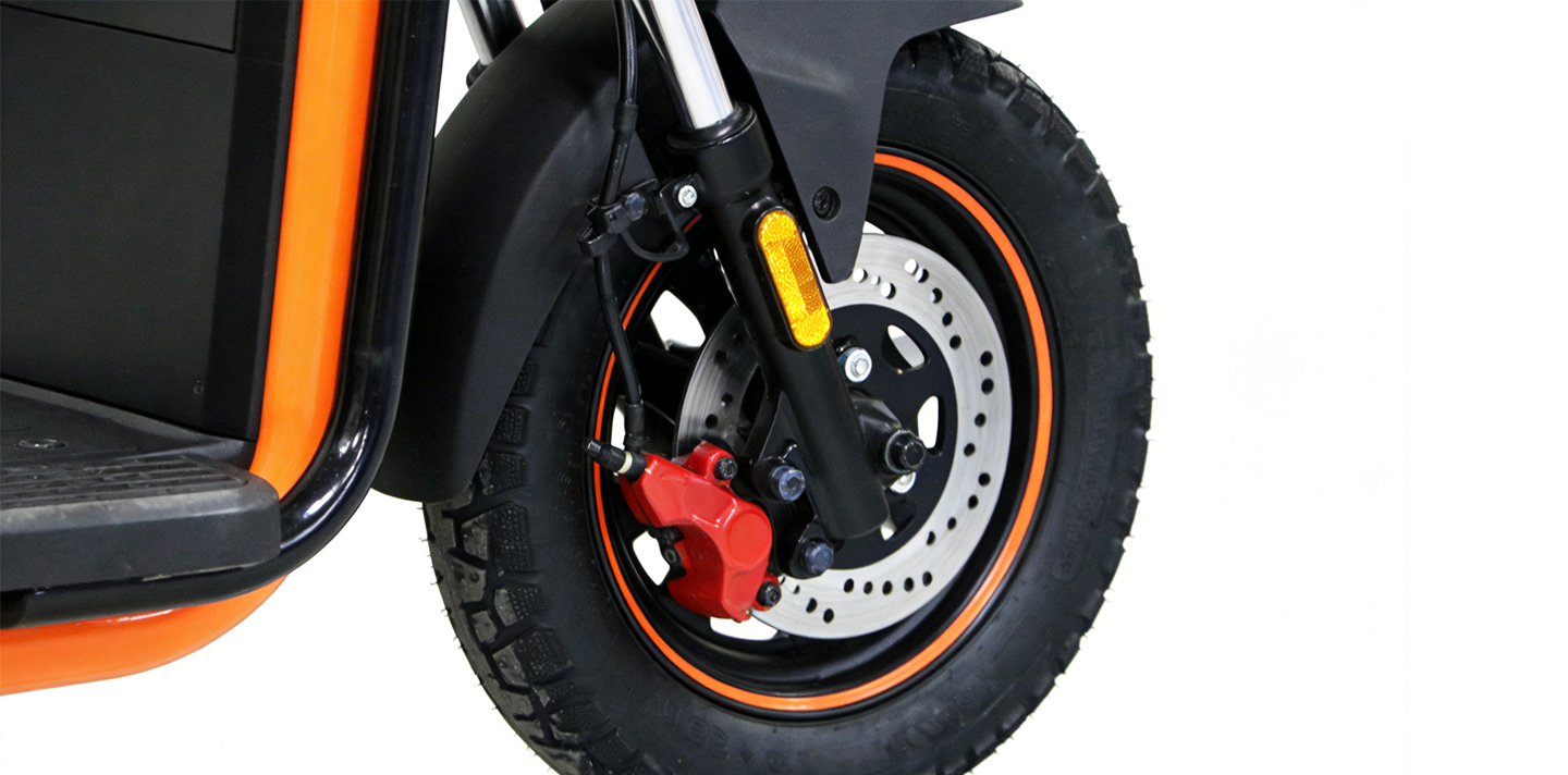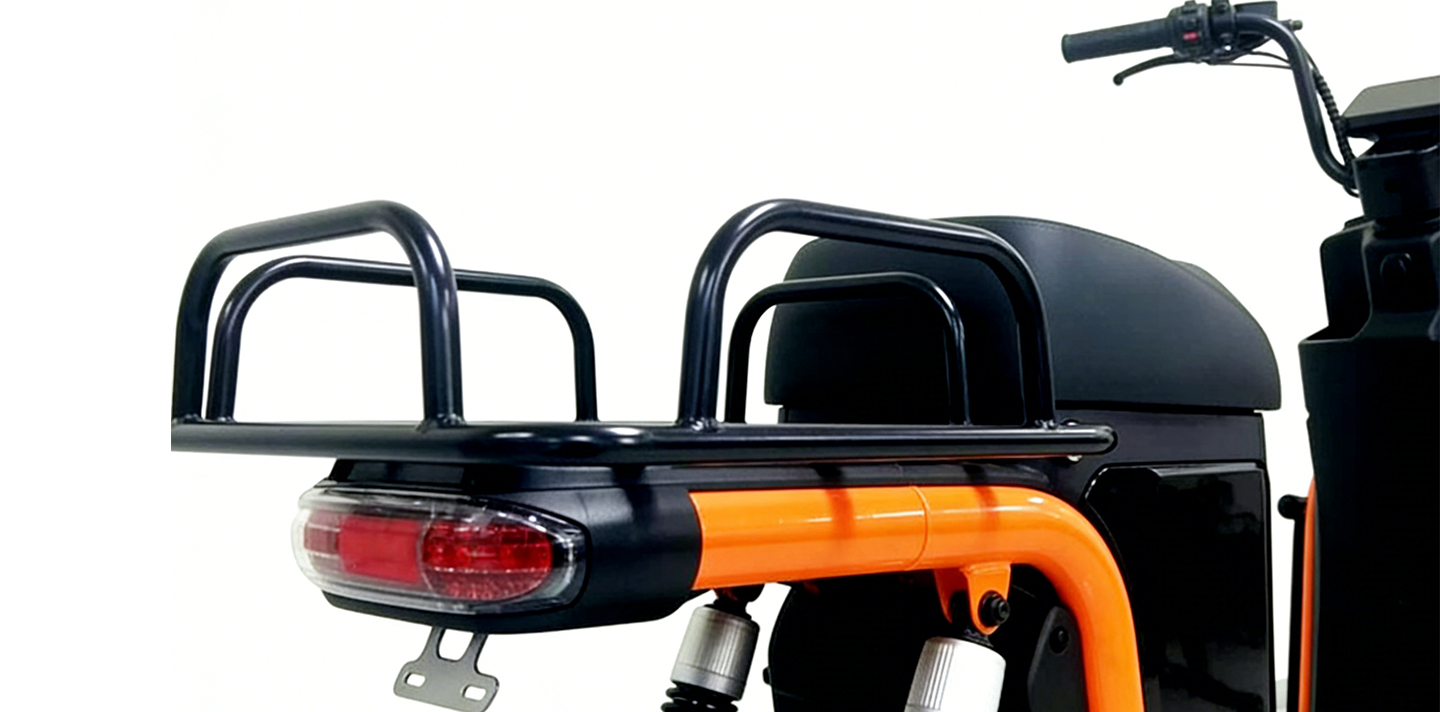 Скутер оснащен прочной рамой из алюминиевого сплава, что обеспечивает малый вес и долговечность. Выбор этого материала соответствует предназначению скутера для передвижения по городу, что согласуется с концепцией кастомных и продаваемых скутеров для людей с ограниченными возможностями, в которых приоритет отдается надежности и удобству управления.
