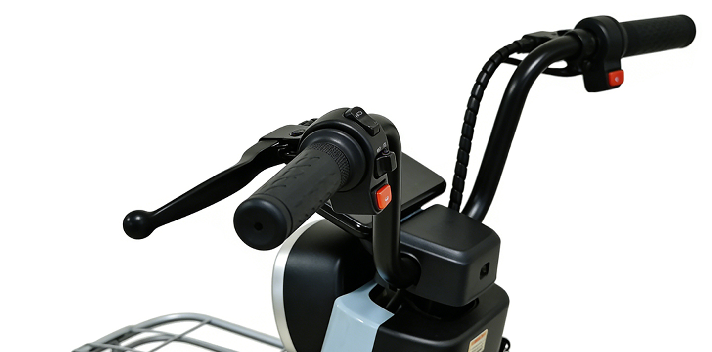 Скутер оснащен прочной рамой из алюминиевого сплава, что обеспечивает малый вес и долговечность. Выбор этого материала соответствует предназначению скутера для передвижения по городу, что согласуется с концепцией кастомных и продаваемых скутеров для людей с ограниченными возможностями, в которых приоритет отдается надежности и удобству управления.